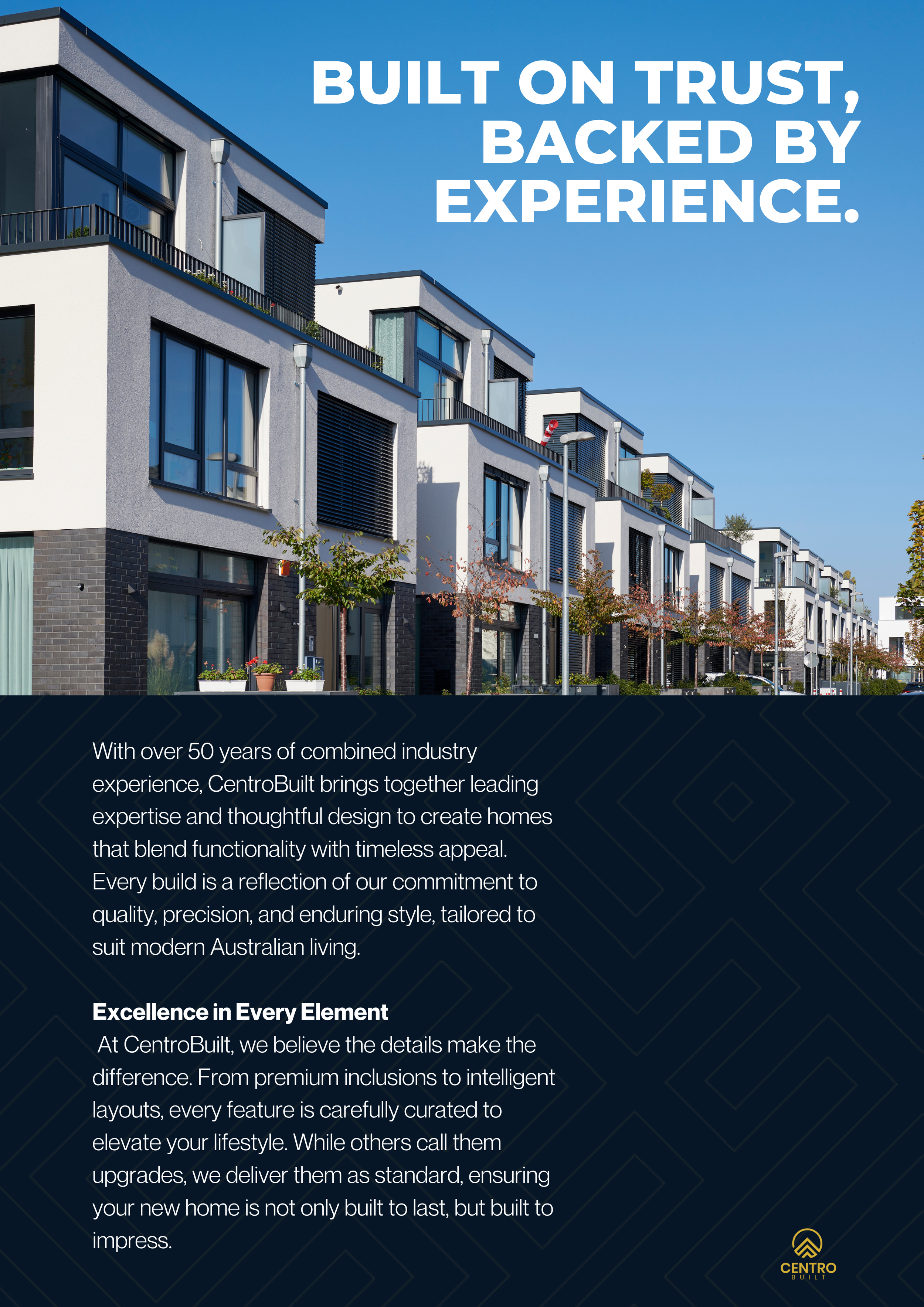 The tone of the brochures are direct, grounded, and confident, designed to reflect Centrobuilt’s professionalism without falling into clichés or sounding like every other builder on the block.