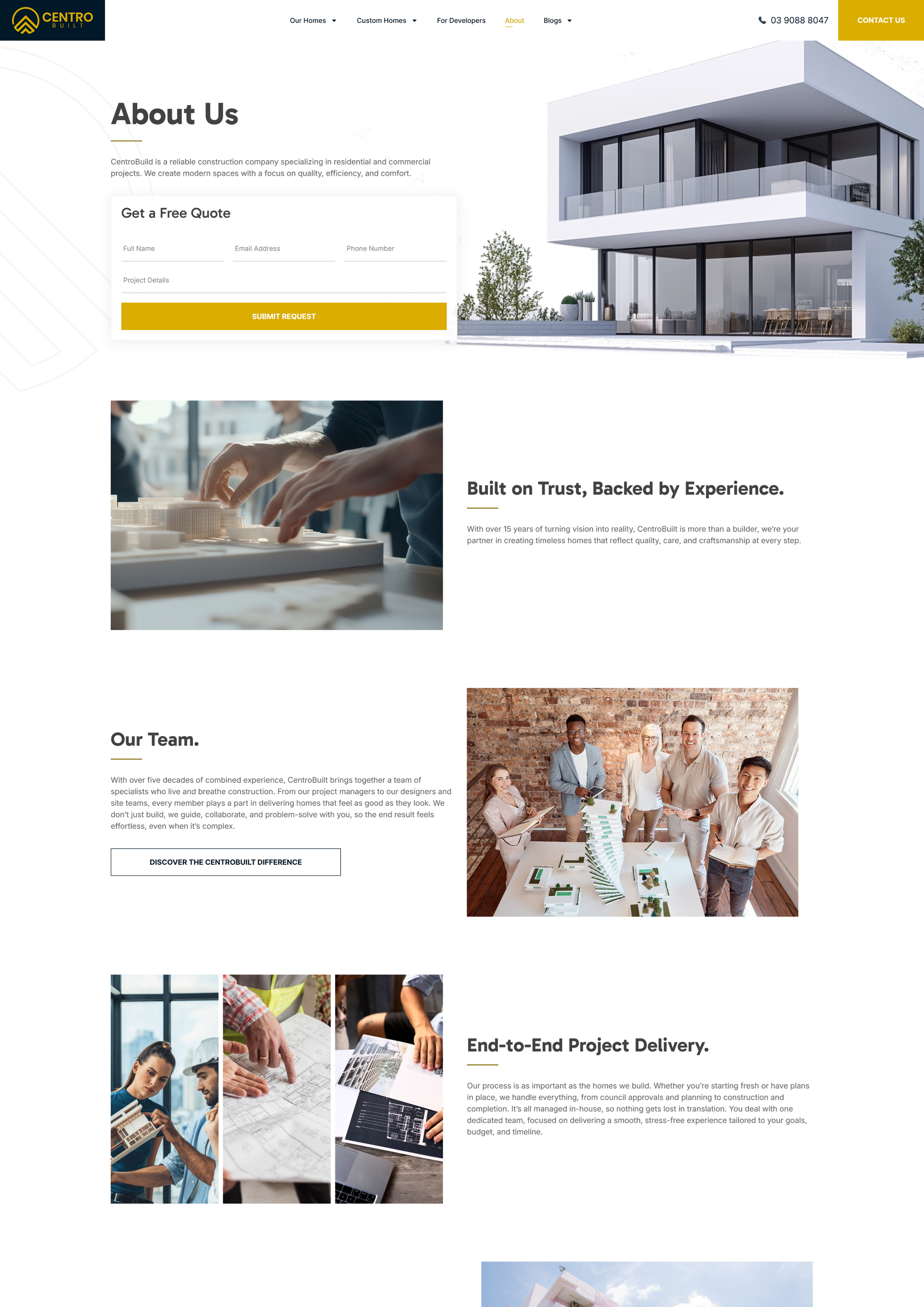 First, we did the groundwork, researching their space, audience, competitors, and goals. Then we sat down with the Centrobuilt team to get crystal clear on what each page needed to do and say, then focus on how it’ll convert sales.